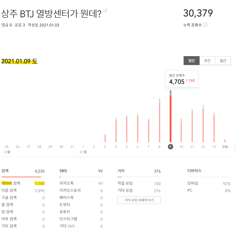 1월 9일 사상 최대의 조회수를 찍고 나서