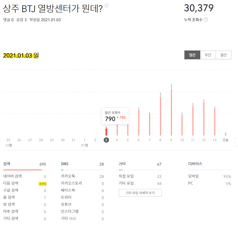 다음 하나만으로도 하루 조회수가 내 블로그 전체 글의 한 달치 조회수를 상회했다.