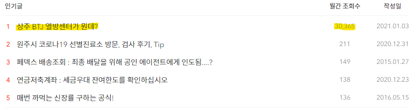 이번달 월간 인기글 순위이다.