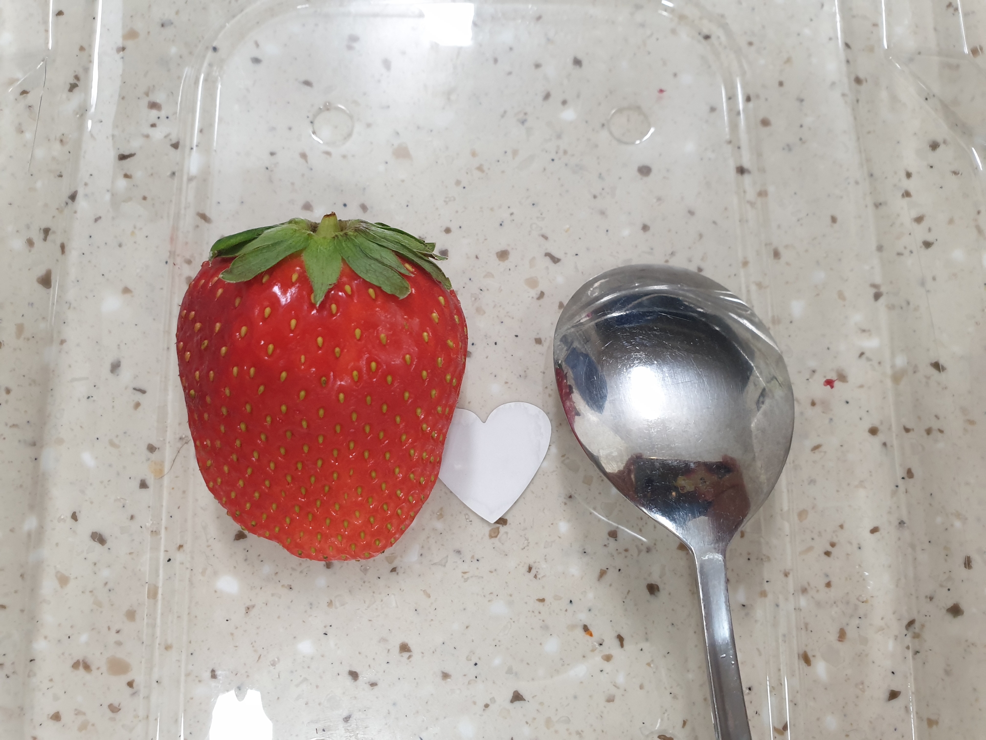 하나 집어서 숫가락과 비교해봤는데, 숫가락 머리부분보다 메리퀸딸기가 조금 더 크다.