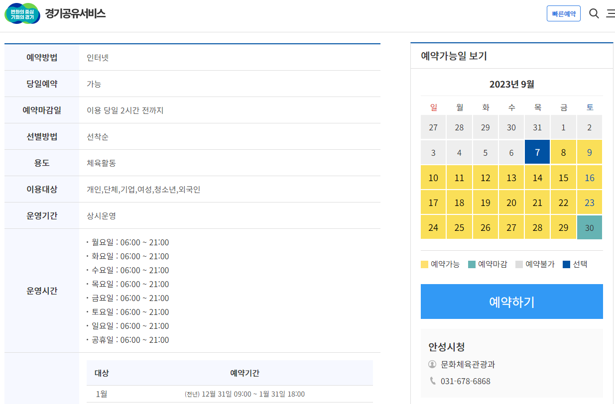 다른 지자체에도 이런 서비스가 있는지는 모르겠지만, 경기도에는 지자체 국유 자산을 자유롭게 예약할수 있는 포털시스템이 구비되어 있다. 시설대관이나 체육시설 이용도 가능하고 문화센터 프로그램 신청이나 라돈측정기 같은 물품의 대여, 그리고 심지어 텃밭분양까지도 있다.