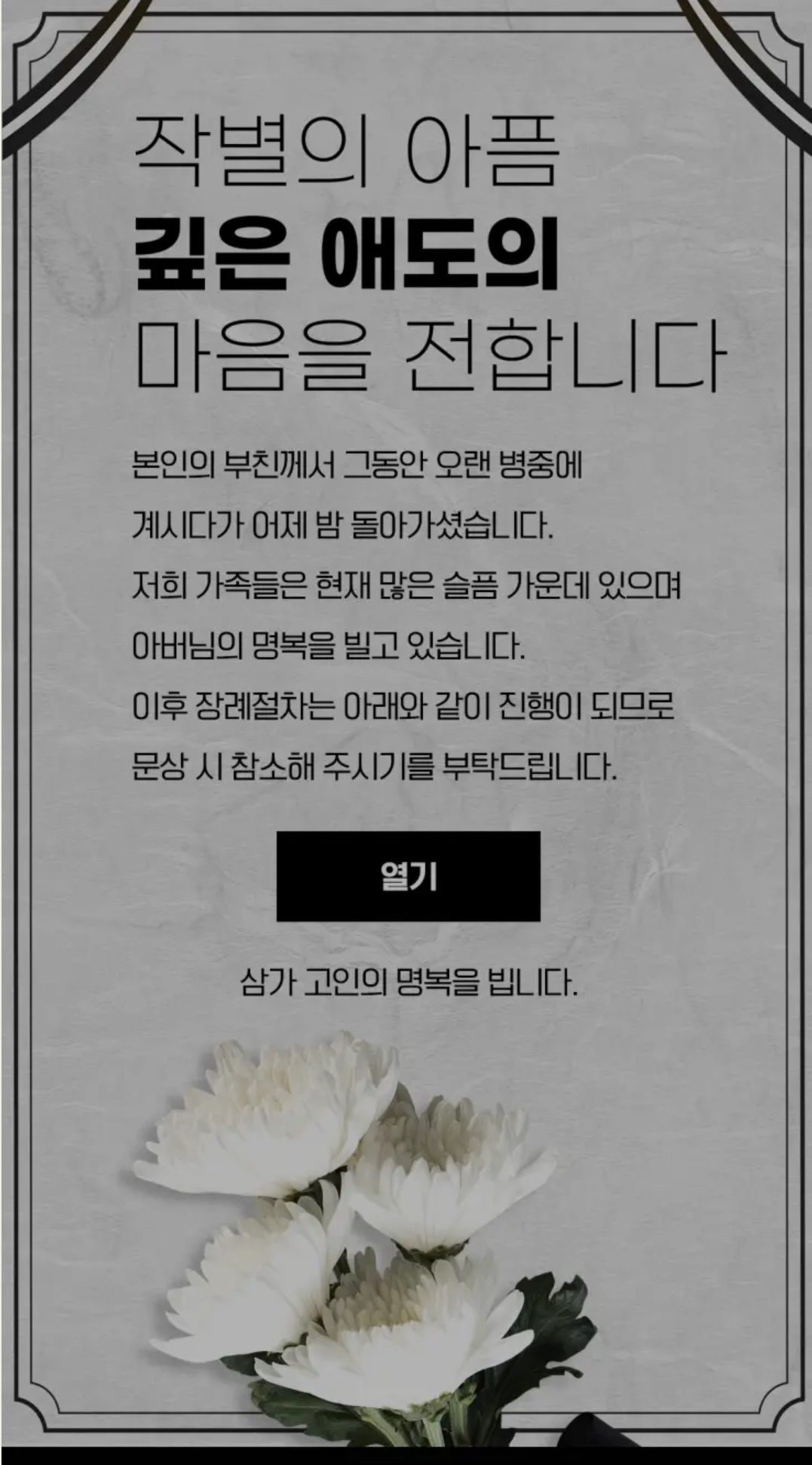 " 부고장을 설치해서 부고 내용을 보려면 확인을 누르세요" 와 비슷한 메세지가 떴던 것 같다.